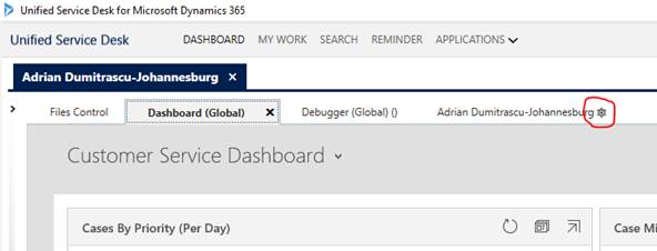 c) Modify the display name of Contact. Navigate to Unified Service Desk >> Hosted Controls >> Contact. Change the existing display name from [[contact.fullname]]-[[Contact.address1_city]] (if you are using OOB configurations) to [[contact.fullname]]-[[Contact.address1_city]] [[$Context.ContactDirty]] .