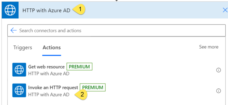With in the Loop add an HTTP with Azure AD connector and select Invoke HTTP Action.